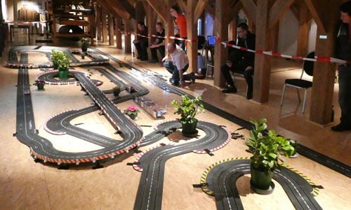 Der Aufbau dauerte eine Woche, da für eine Bahn dieser Größe viele technische Details beachtet werden müssen. Damit der "Sprit" - also der elektrische Strom - unterwegs nicht ausgeht muss etwa alle fünf bis acht Meter eine Stromeinspeisung erfolgen. Natürlich musste die Strecke auch reichlich probe gefahren werden.